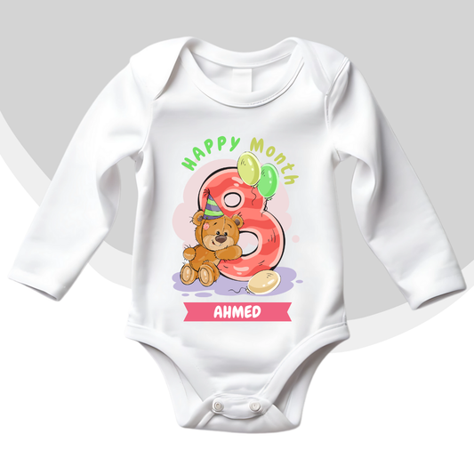 8th Month Milestone Baby Romper | Custom Name Baby Romper
