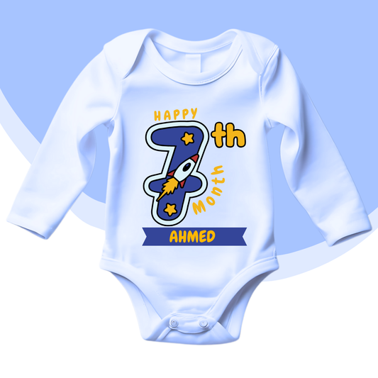 7th Month Milestone Baby Romper | Custom Name Baby Romper