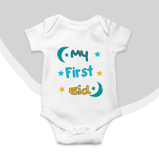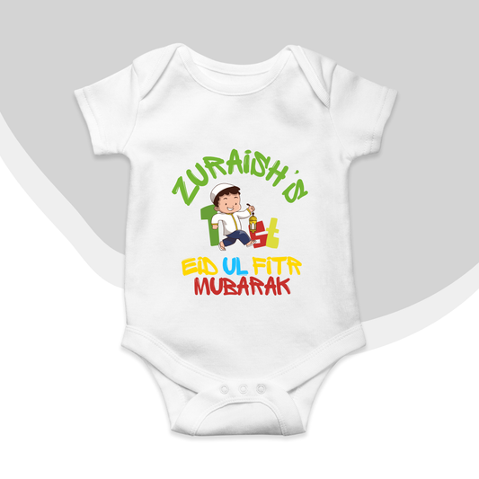 Custom Name Colorful 1st Eid Baby Boy Romper| Size New Born to 18 Months