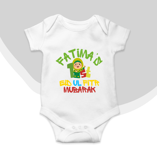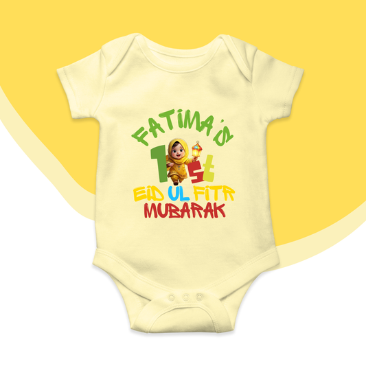 Custom Name Colorful 1st Eid Baby Girl Romper| Size New Born to 18 Months