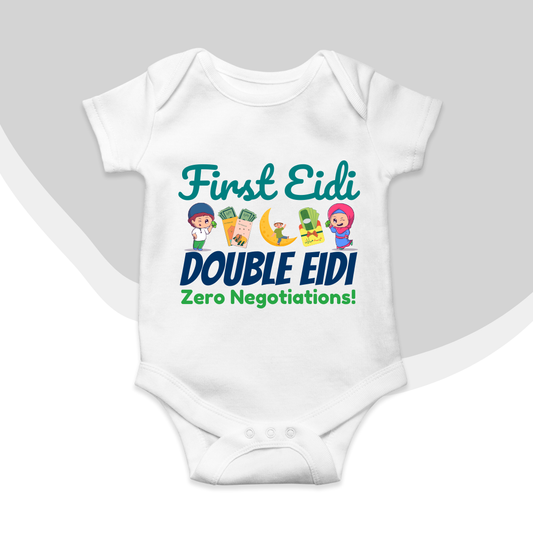 Eidi Zero Negotiation Funny Baby Eid Romper| New Born-18 month