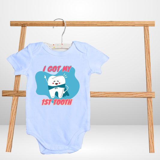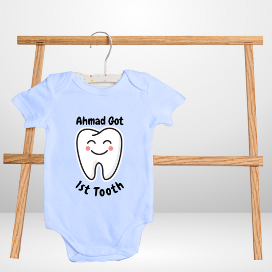 I Got My 1st Tooth Blue Custom name Baby Romper