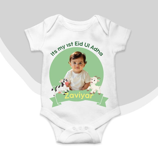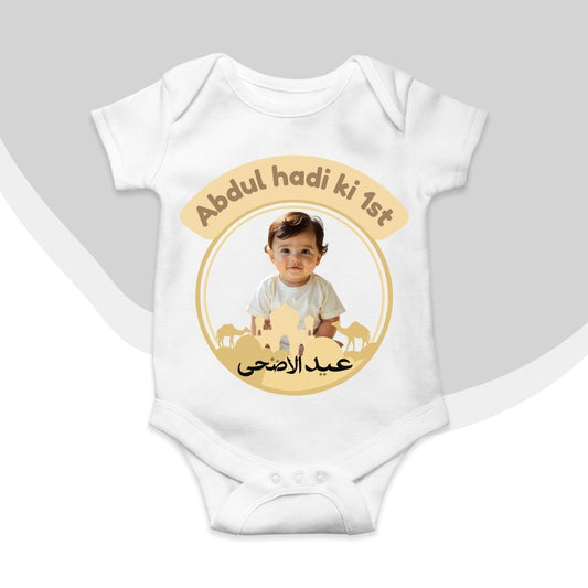 Custom name and picture 1st bakra eid new Gold design baby romper