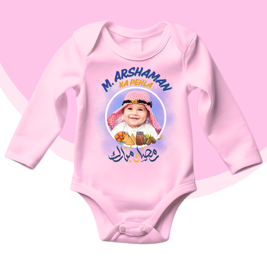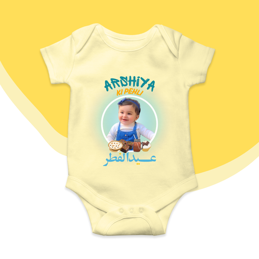 Custom Baby Name and Picture Eid Romper Blue background| Size New Born-18 Month